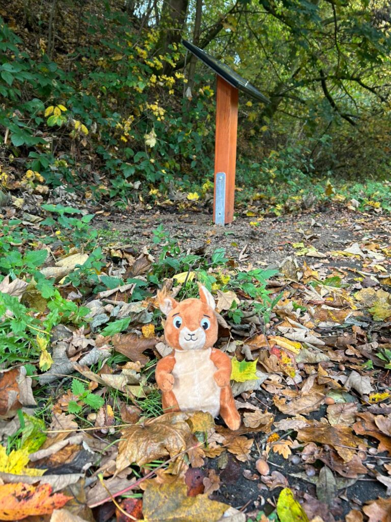 Auf dem Bilderbuchpfad könnt ihr aktuell die Geschichte von Egon Eichhorn spazierenlesen. In den siebzehn Stationen erfahrt ihr, was es für die Tiere bedeutet, wenn wir Menschen ihren Müll unachtsam in der Natur hinterlassen.
