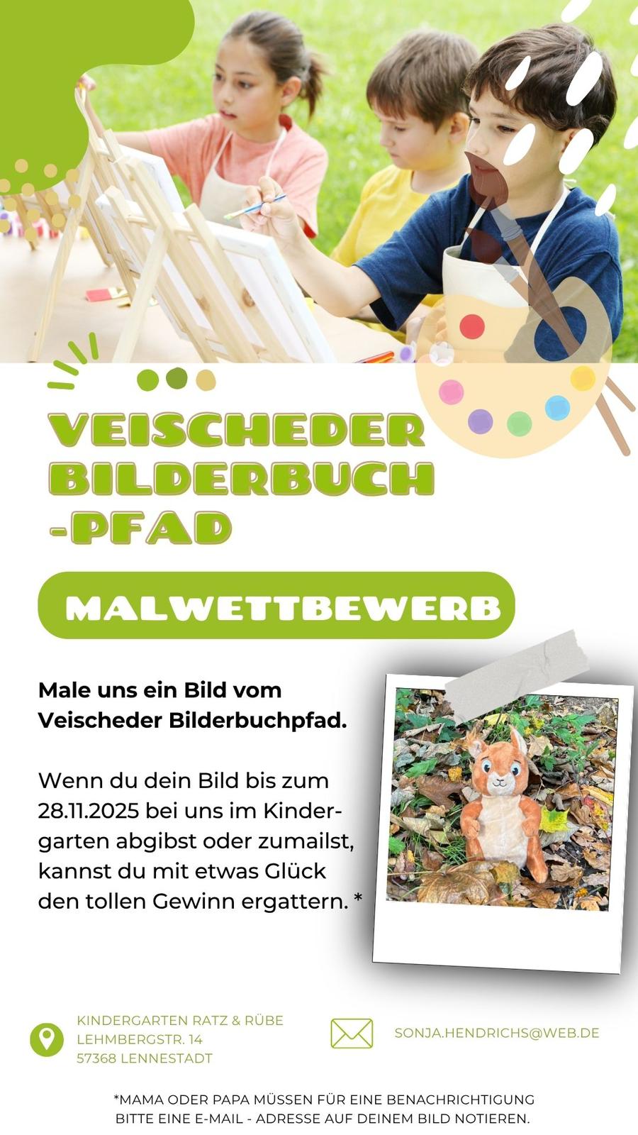 Der Veischeder Bilderbuchpfad wird ehrenamtlich betrieben. Dank verschiedener Fördermittel konnte der Elternverein Lennestadt Grevenbrück e.V. die wetterfesten Stationen anschaffen.